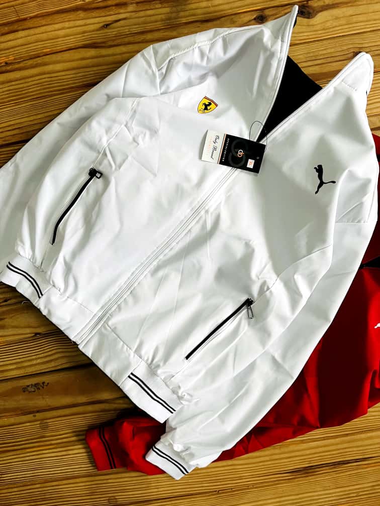 With its dual-layer design, it offers warmth and flexibility, making it perfect for outdoor activities or casual wear. The Ferrari and Puma logo detailing adds a touch of luxury and sportiness.